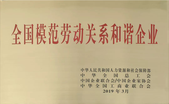 “全国模范劳动关系和谐企业”的评选是由人力资源和社会保障部、中华全国总工会、中国企业联合会/中国企业家协会、中华全国工商业联合会组织的。自2005年至今,国家先后四次评选表彰了全国模范劳动关系和谐企业,在全社会产生了广泛影响和良好的示范效应。此次评选重点是党的十八大以来在和谐劳动关系创建活动中表现突出、具有示范引领作用的单位。